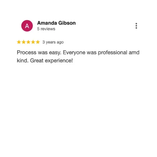 “ Process was easy. Everyone was professional and kind. Great experience! “
